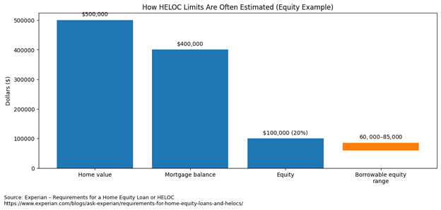 Your HELOC limit is driven by your home value, current mortgage balance, and the lender’s combined loan-to-value limit. Lenders often cap how much they will lend against your equity, and an appraisal is commonly required to confirm value.