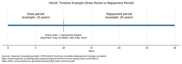 The Federal Reserve and other regulators have also warned about “payment shock” when HELOCs move from draw to repayment, especially where interest-only payments were allowed.